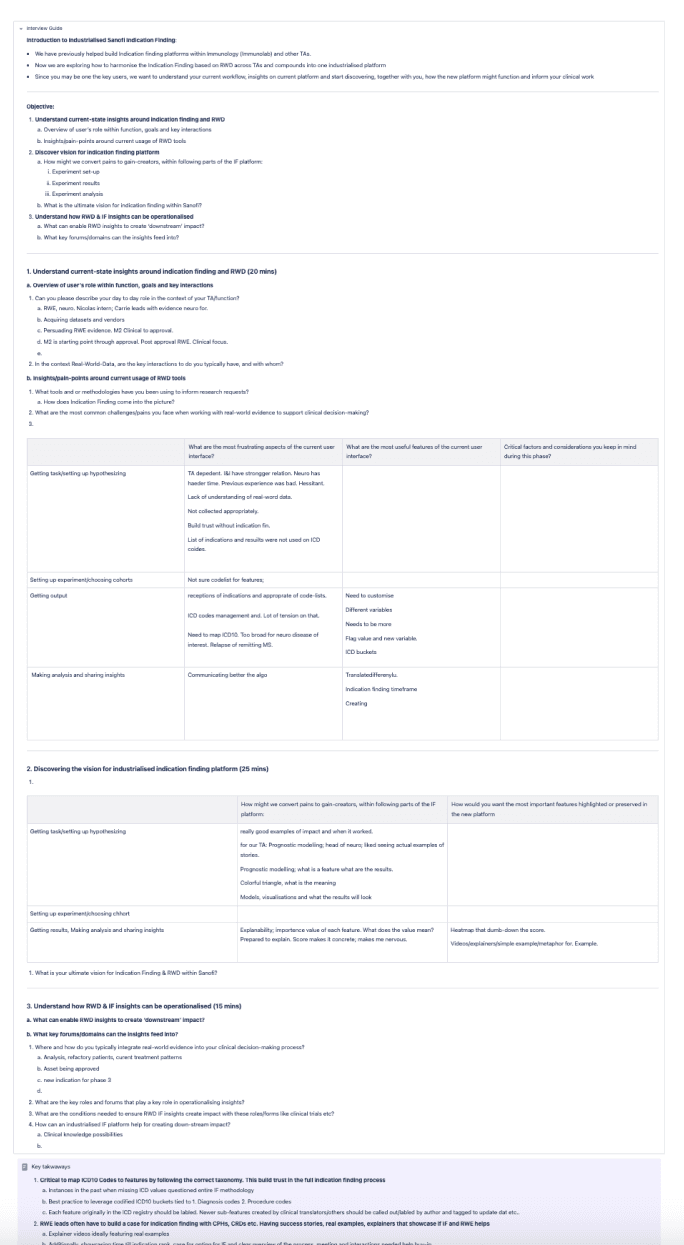 Using rich text features within Confluence to conduct expert interviews and document initial takeaways that bring stakeholders along.