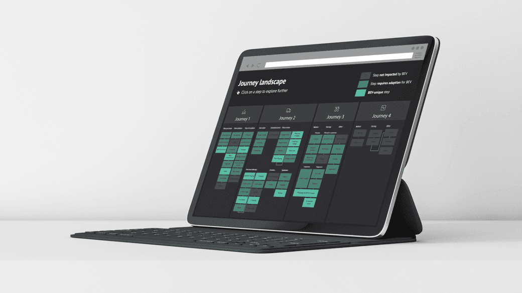 Each journey had sub-journeys which could continue as-is from the ICE CX; others needed to change with electrification and some needed to be entirely new sub-journeys.