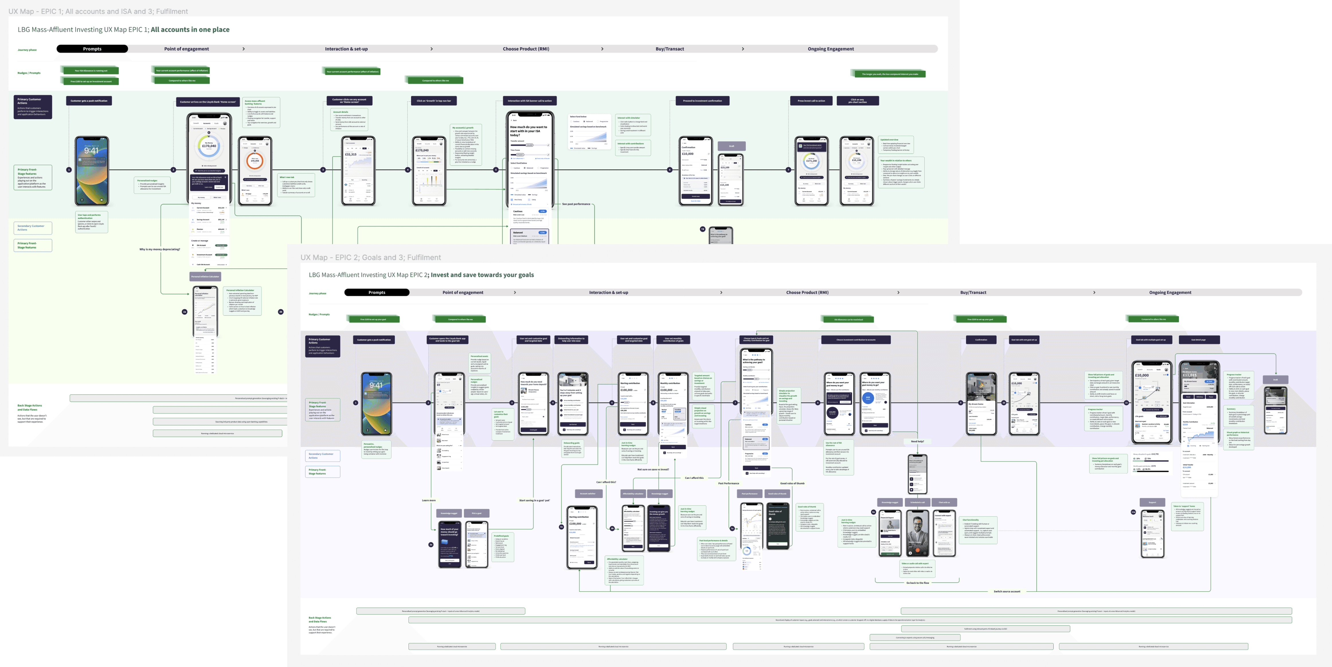 Creating overarching UX map for the two key journeys documenting intended UX and data inflow to help set-up build for success