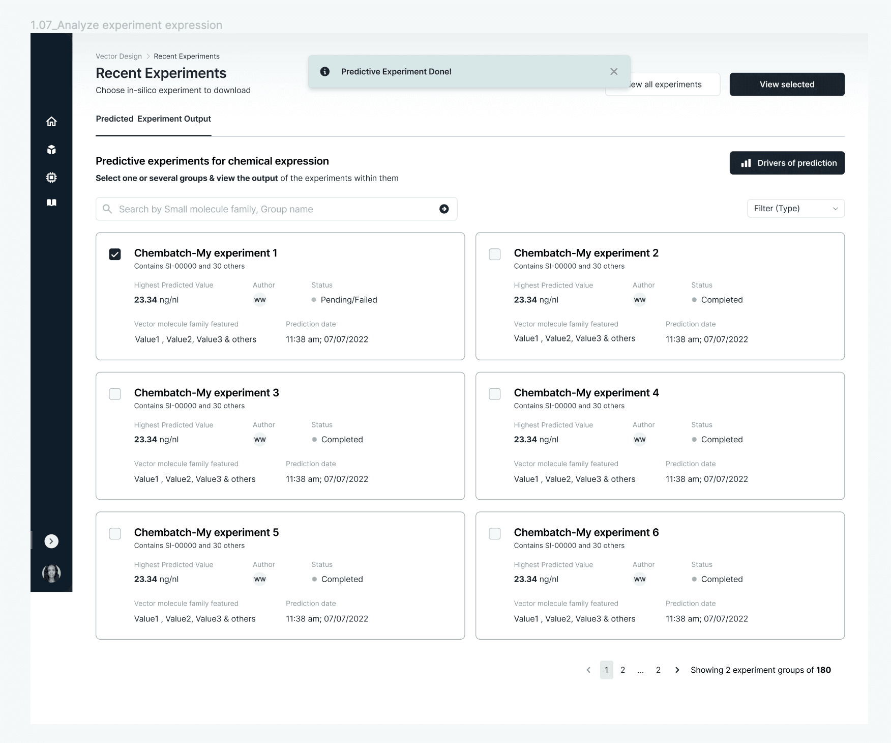 We integrated algorithms into a single digital product experience for analysis, tracking, and reporting of large molecules in-silico analysis.